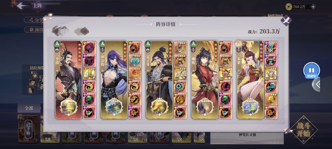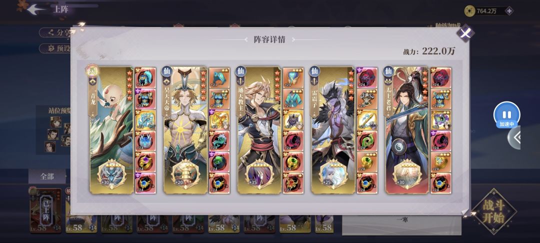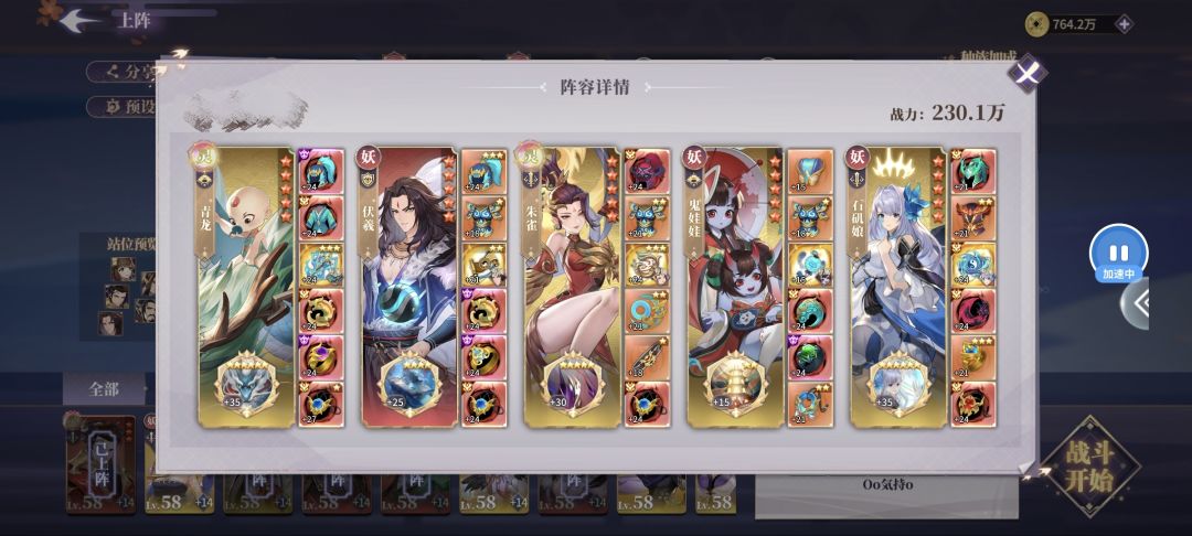 仙首轮爆发变态,只要能挺过去基本就可以打,狐尊锁血,兰、青苍攻击力调整为最高吃伏羲圣盾,李靖被爆自带护盾死不了,伏羲魂契全点防御带龙尊卡50魂契带护盾苟命。