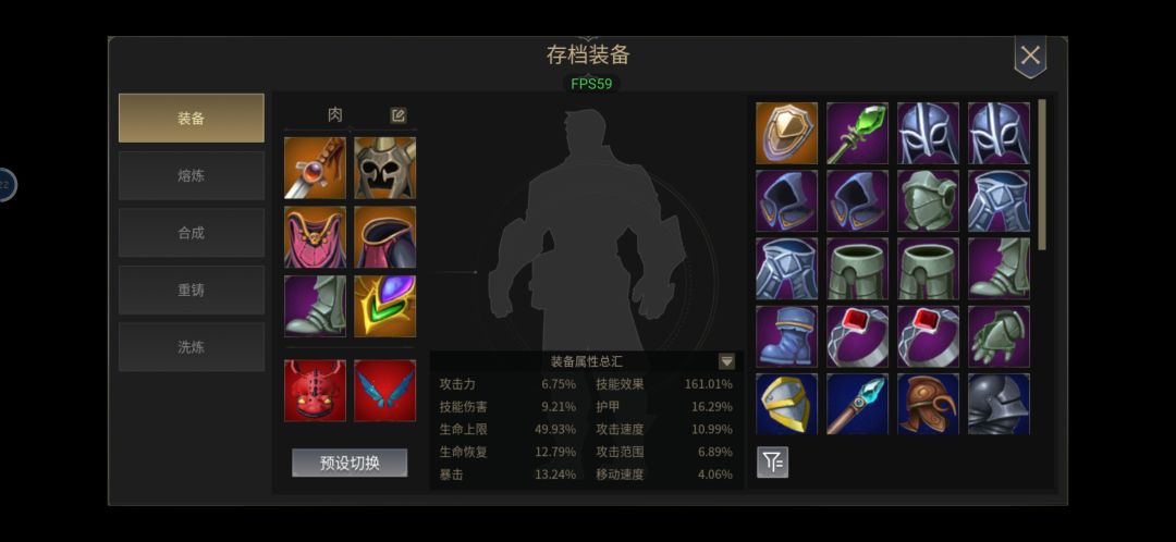 三. 装备篇:品质由低到高 白–绿–蓝–紫–橙. 三个一样名字的装备 才可以合成高一级别的装备. 两个一样名字的装备可以重组成新的同品质装备. 在没到橙色之前不洗练装备. 然后每一个部位有好几种不同的装备, 这个个人觉得不会对属性有任何影响. 在没有橙装之前. 尽量带技能特效、冷却缩减、技能伤害、生命上限这几种属性. 技能特效是这个游戏目前收益最大的属性. 6件装备榜一技能特效300%多. 而我只有160.