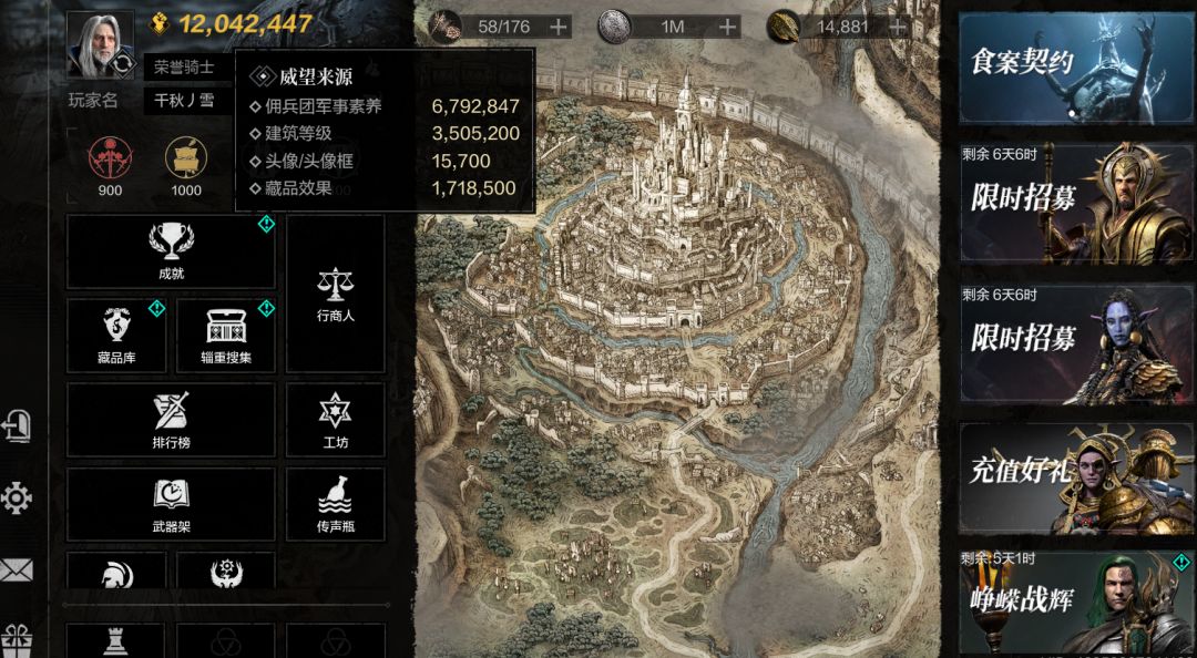 提升佣兵实力的重要资源有:等级,铭文,武器,升华,聚念,军备