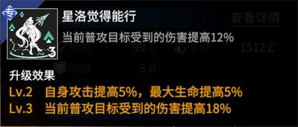 星洛的大招和被动能够提供大量伤害加成,配合大招伤害较高的手办可以实现快速击杀敌人,所以搭配轮战徽章能够帮助她更快地释放下次大招,并且回复的生命值也能更好地帮助她存活到之后的战斗中,而在战斗压力较大的场合可以使用荣耀徽章来确保星洛释放大招来救助队友;属性方面最大生命和攻击是非常契合星洛的属性,生存压力较高的情况下也能选择防御属性替换攻击属性,进一步提高她的生存能力。