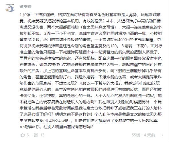鲨皮套也是咱们的老朋友了,就像小苏打讲的,要说打是亲骂是爱,那您是最爱T3的选手之一了;言归正传,格罗丽娅设计之初定位就是传统长枪位,霰弹枪设计更多是应急,至于两个大招我们会进一步调整和测试,使其脱离现在的尴尬处境,具体是更加泛用还是在更加具有针对性我们会在测试的同时参考大家的建议。