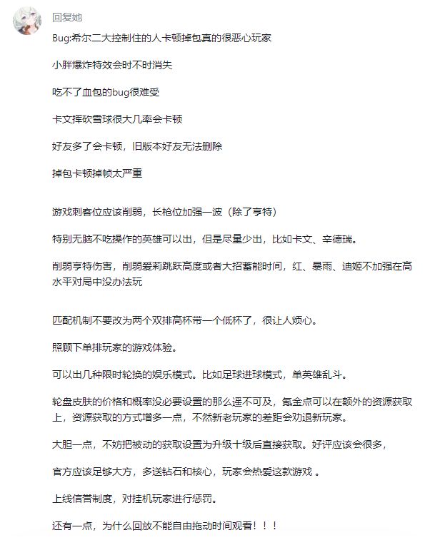 最后,我们对不良游戏玩家保持绝对的0容忍,信誉制度的提议我们会考虑,也会加大惩罚频率,再次感谢选手“回复她”给我们提供的这些建议!!