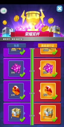 竞技模式,顾名思义,这里是玩家切磋PK的场所。并官方每个赛季按照玩家竞技模式的获取的奖杯,可以领取海量奖励(如下图)