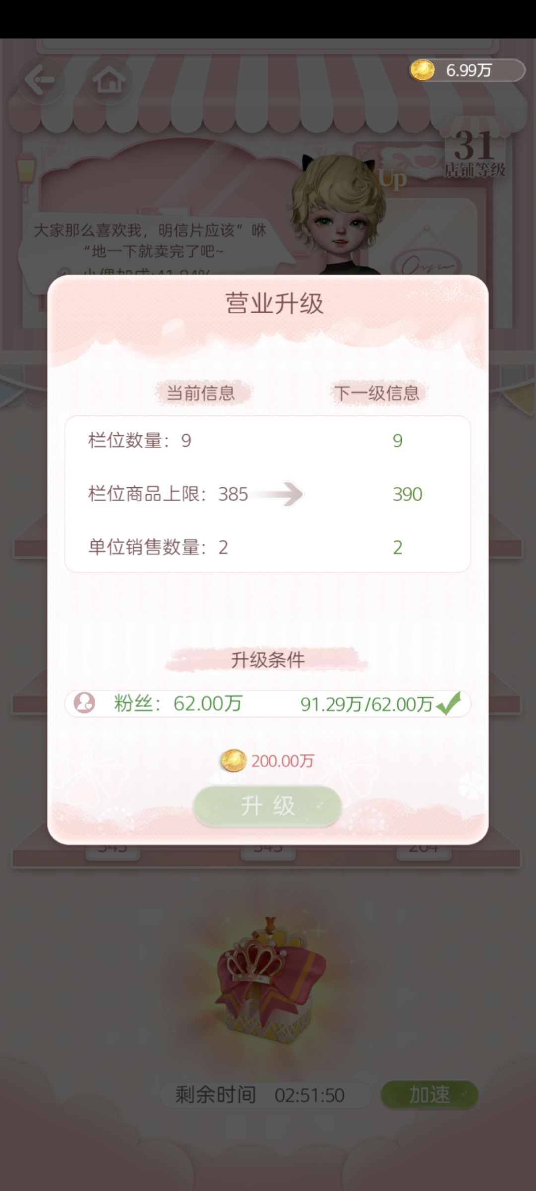 因为到后面一个订单都十几万金币了,我现在的小店一次也才三十万,这个慢慢升不着急