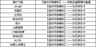 在活动期间内,各位冒险家们在本帖下回复“航空”类组件评测结果,即可参与本次活动。