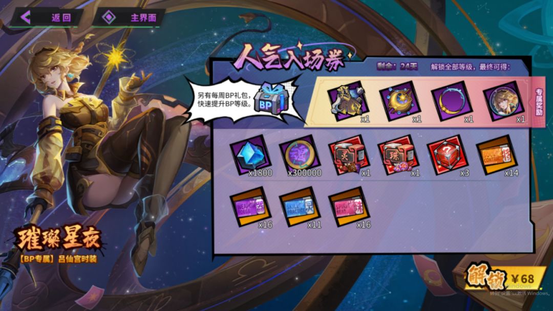 解锁「人气入场券」即可获得吕仙宫·幽影专属时装「璀璨星夜」。整体服饰以黑色、黄色系为主,星月相依于裙摆,梦幻般的璀璨星辰点缀在袖间。还有星月可以寄望,还有宇宙浪漫不止,宛若天上神明,降临于凡间。
