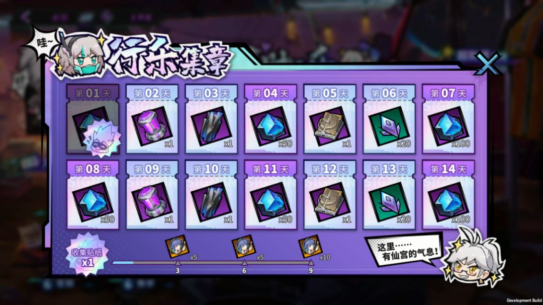 每日登录游戏签到,即可通过【行乐集章】获得签到奖励一份!