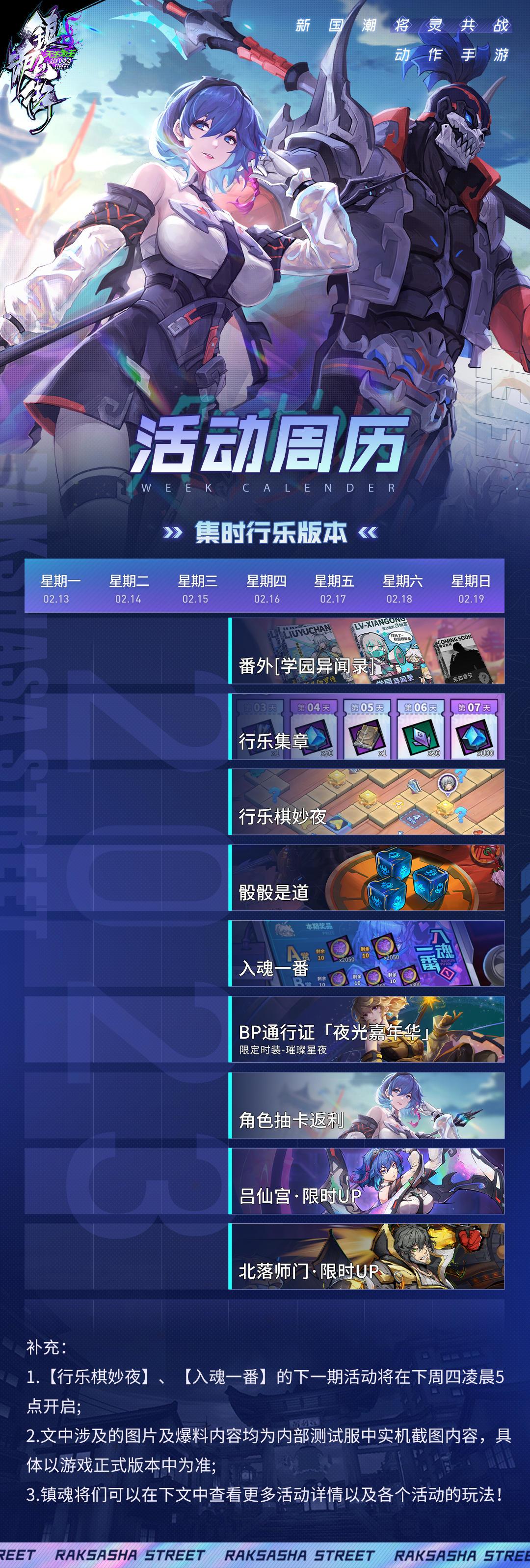1、【行乐棋妙夜】、【入魂一番】的下一期活动将在下周四凌晨5点开启。