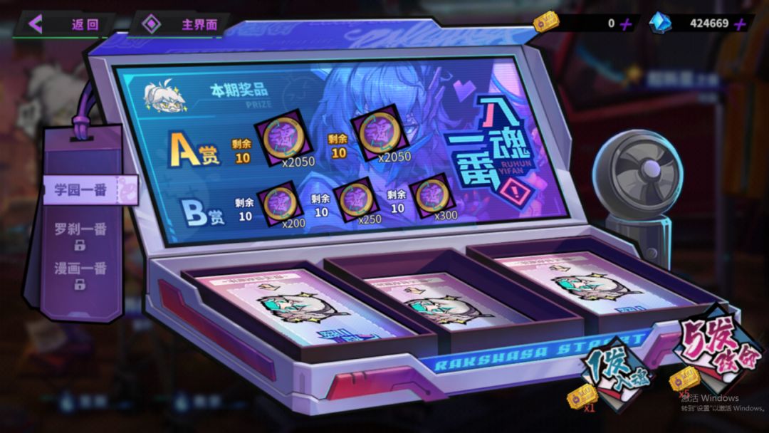 本周四将解锁「学园一番」,使用「强运一番券」兑换抽奖机会。