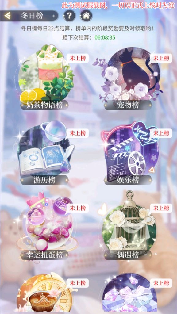 冬日榜一共分为8个不同的榜单,每个榜单单独结算。