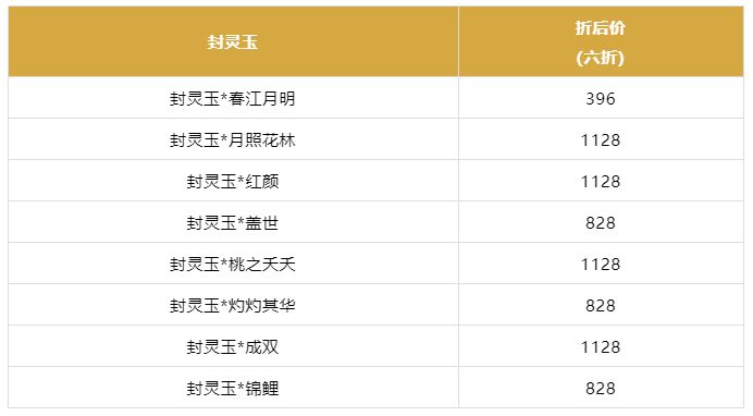 2月11日~2月15日活动期间,以下封灵玉开启限时折扣返场。