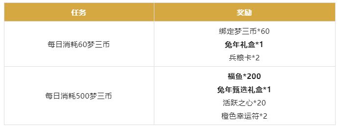 2月16日00:00~3月1日23:59,累计消耗梦三币可领取奖励!