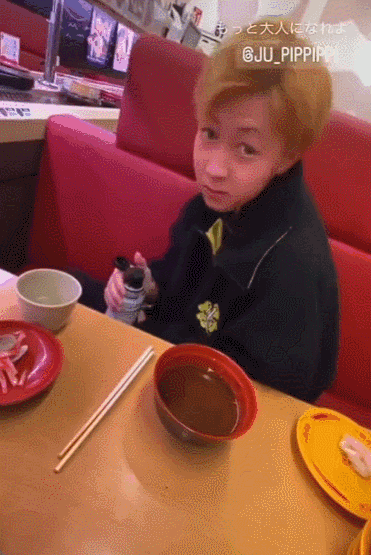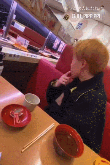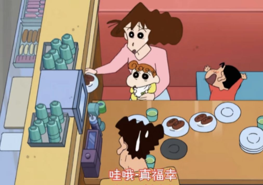 或许是为了给生意惨淡的回转寿司应援,新一期《月曜日》是一脸幸福的品尝寿司的小爱