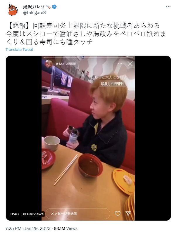 没多久,这段视频就产生了爆炸💥的传播效果,在1亿多人的岛国达到了约5000万次播放!整个回转寿司行业遭到了空前的「信任危机」打击。