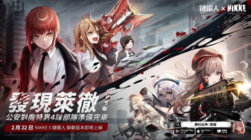 NIKKE胜利女神官方发推公布了与《电锯人》联动的消息!联动内容预计会在2月22号正式上线,动漫中的人气角色玛琪玛和帕瓦均会登场,大概率两人都是SSR角色!目前游戏内的连续登录活动已经开启。