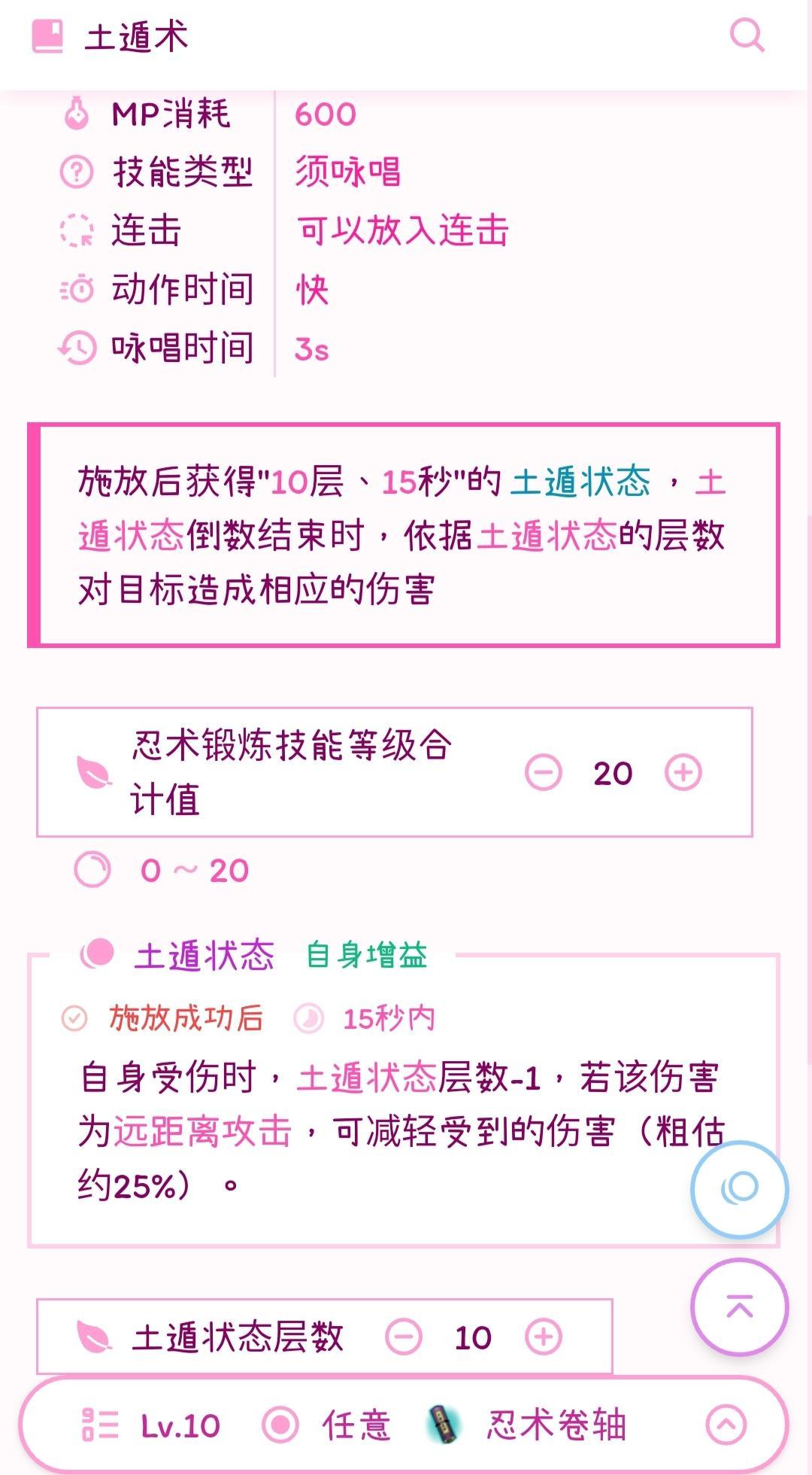 忍术:1,2锻炼10。25技能点