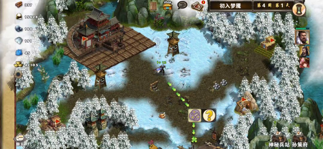 打法思路:从秘境出来以后我们回到主城然后把兵带走下河就剩右边最后一路结局。在决战之前把上面城池里的兵也全部带走以后就去解决拦路的武将。解决掉他以后上岸这个时候可以开始升级鹰卫了资源不够就用金币买铁矿换全部升级鹰卫以后分个组避免伤害溢出浪费,做好准备以后就可以碾压式攻城了。