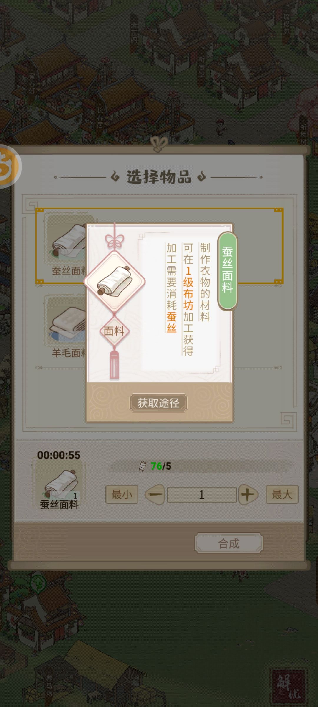 希望能在加工的时候,能更方便的看到现有库存。比如说蚕丝面料下面显示的是现有库存,或者点进去物品说明的时候能带上现有库存。