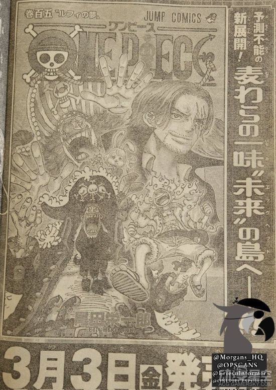 《海贼王》漫画单行本105卷《路飞的梦想》单行本封面公开了,新的四皇集体亮相!除了路飞、香克斯、巴基和黑胡子之外,还有一个兔子加洛特。《海贼王》105卷将于2023年3月3日发售。