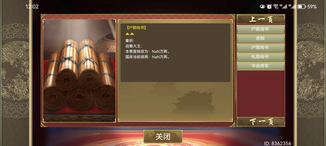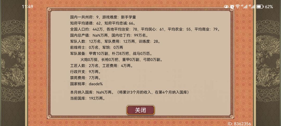 丞相换成老子之后,收支表税率和收入变成了乱码,第二个季度国库直接空了。