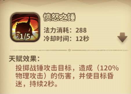 愤怒之锤,仔细去观察一下,进战斗就晕怪2秒,神技!!!所以哪怕残血进入下一场战斗也能起死回生。(可在视频里仔细看,起手晕敌方,然后瞬间起死回生)