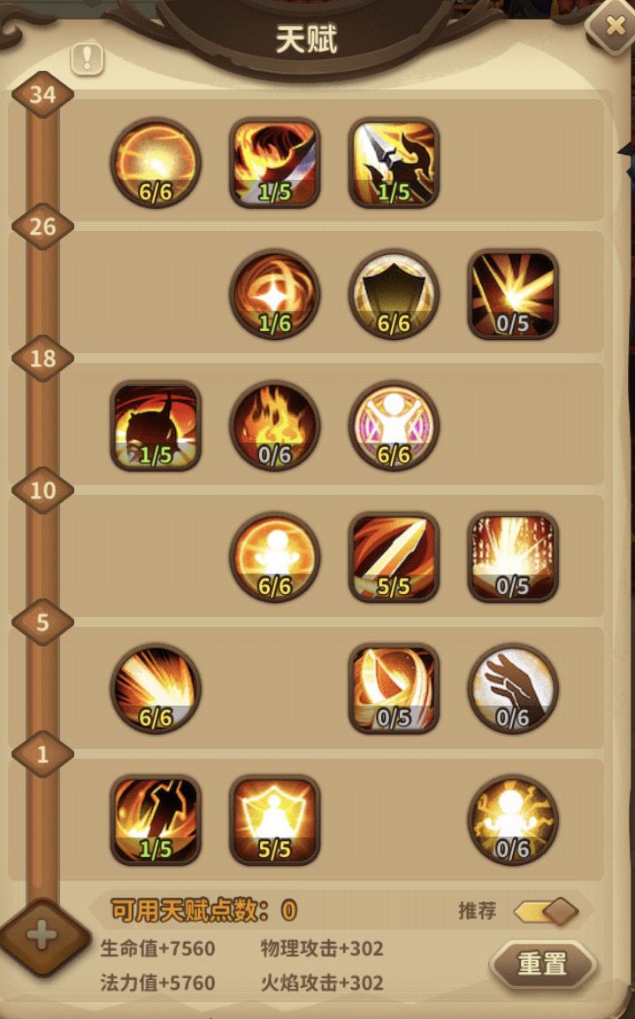 基础加点:平时不需要调整天赋时都按这个来(部分调整例子见实战截图)