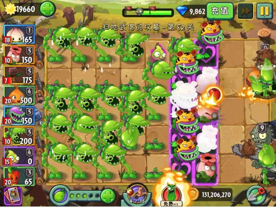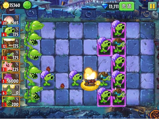 黑暗无尽的法师僵尸,冰河无尽的穴居僵尸,摇滚无尽的街机僵尸,都能被食人花豌豆轻松吃掉。在这些有中型僵尸的无尽里,遣上食人花豌豆,便可以轻松配合“大嘴熊果”竞速阵,将中型僵尸吸入,并立刻秒杀,节省下宝贵的魔甘。