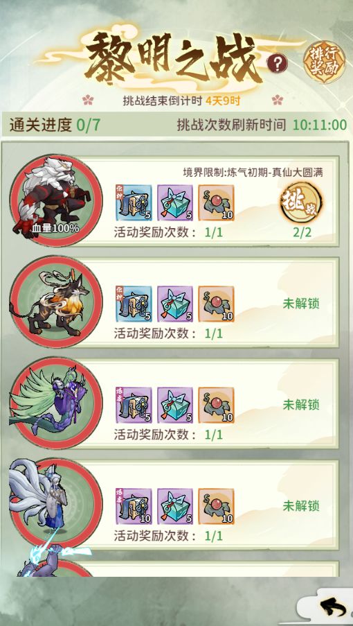 七天活动内,上阵境界限制不固定。
