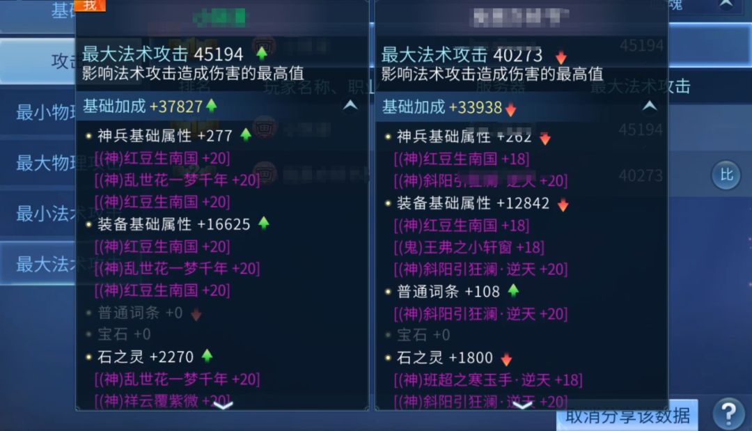 小伙伴们可以自行选择是否分享,分享过该项属性的构成后,才可对比他人的该项属性构成。