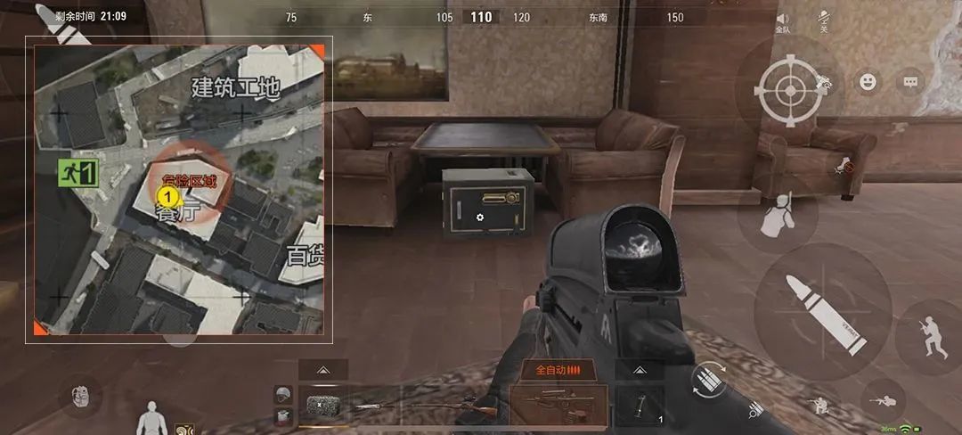 说完了撤离点,我们再简单聊聊军港的资源分布。军港的资源分布较为平均,无论在哪个出生点,都有首选目标可以进行搜索。地图西侧的餐厅是一个重要资源点。除了一层有旅行箱、医疗箱、二层楼还有武器箱和一个桌子下的免费保险箱。二层楼往里走还有一个上锁的钥匙房,里面藏着一个电子保险箱以及武器箱、防寒大衣等容器。