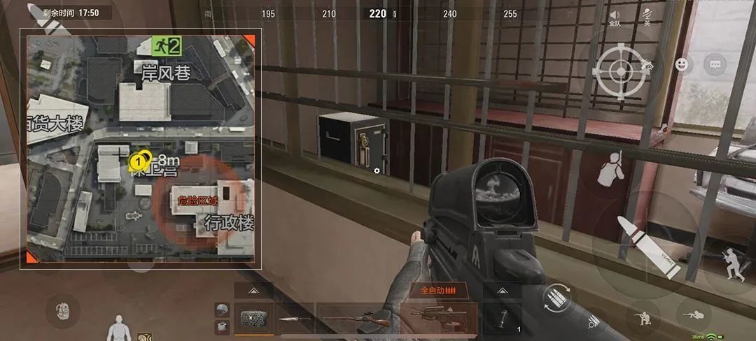 岸风巷是军港地区的中心和十字路口,这里的下水道入口(下图2号撤离点)是地图中唯一的常驻撤离点。由于下水道撤离点对所有先锋(甚至是伪装者)开放,且下水道内地形狭窄视线昏暗很容易遭人埋伏,如果选择在这里撤离一定要提前扔雷排点,避免为他人作嫁衣。岸风巷和邮局之间的广场有一架武装直升机(1号撤离点),需要前往东边街道上的军用帐篷,使用电台呼叫后开启直升机。在撤离倒计时期间,直升机引擎的声音可能会招来其他不速之客,如果选择坐直升机撤离可以利用烟雾弹进行掩护。