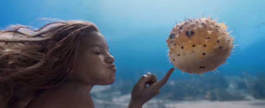 迪士尼真人电影《小美人鱼》最新剧照流出,爱丽儿俏皮的吓了河豚一跳!一起来欣赏一下吧。