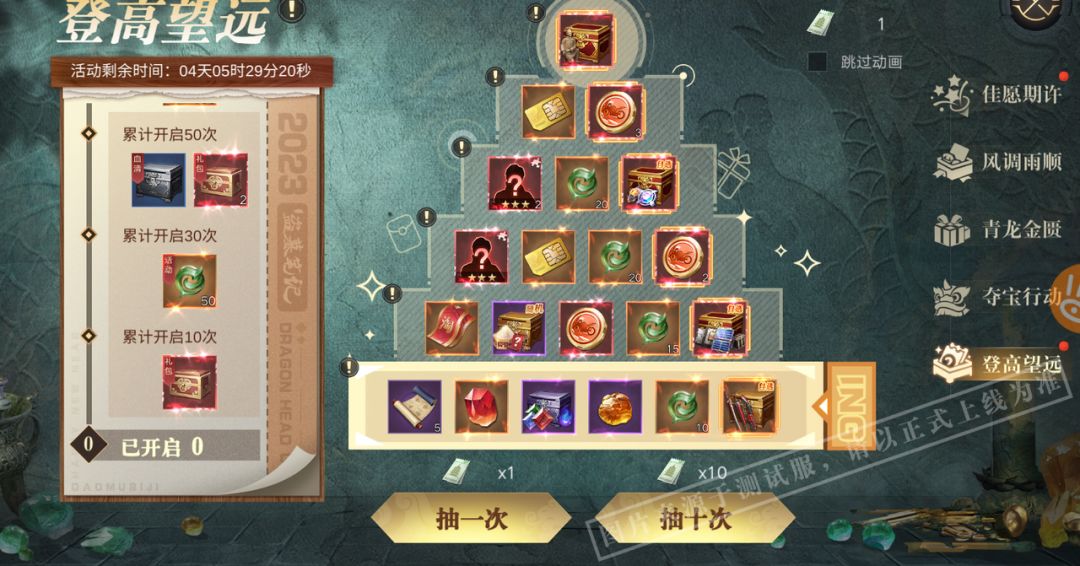 活动期间,可使用青龙礼券进行抽奖。