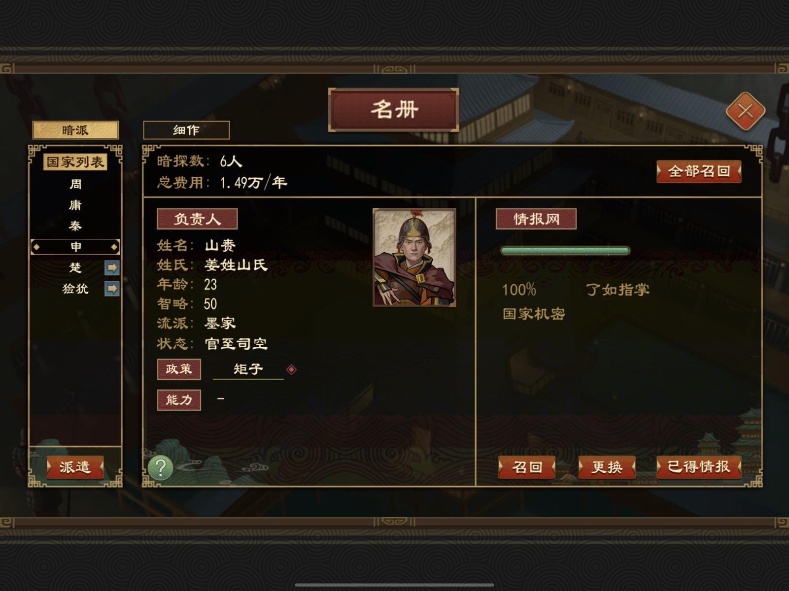 一种奇妙的感觉,谍报系统是我对这个游戏所钟爱的功能之一了,做的非常的有意思,我不知道其他策略类游戏有没有开创先河,但我还是第一次碰到谍报做的那么好的,至少逻辑是闭环的