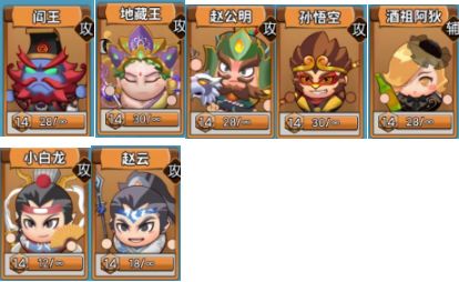 孙悟空x2 小白龙x2 赵云x2 阎王x2 酒女x2 地藏 谛听x2 阿斗x2 唐僧x2