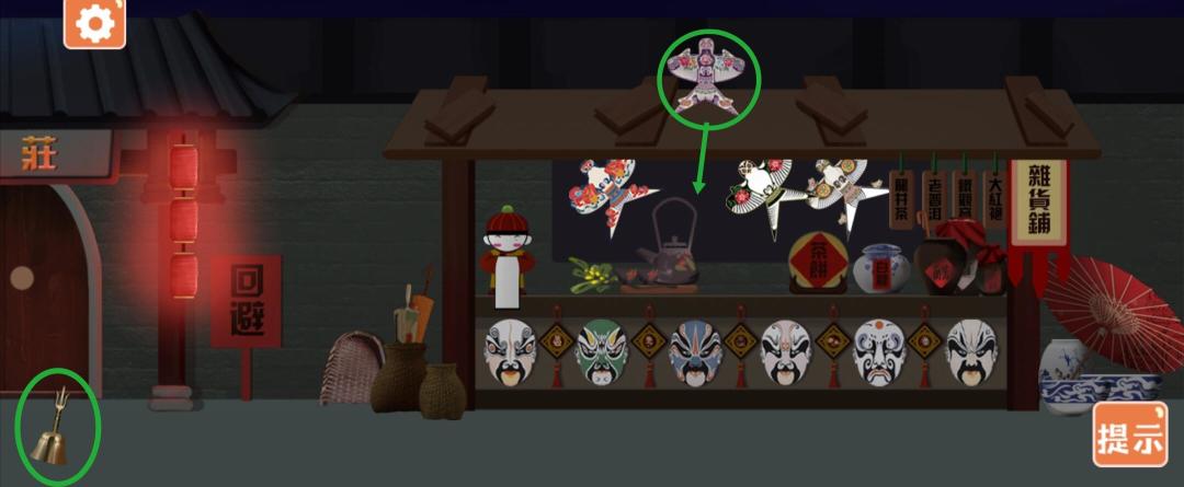 2,摆放东西前先捡门旁边的铃铛,摆放过程中景色会一点点变暗,需要摇一下铃铛使其重新亮起来。