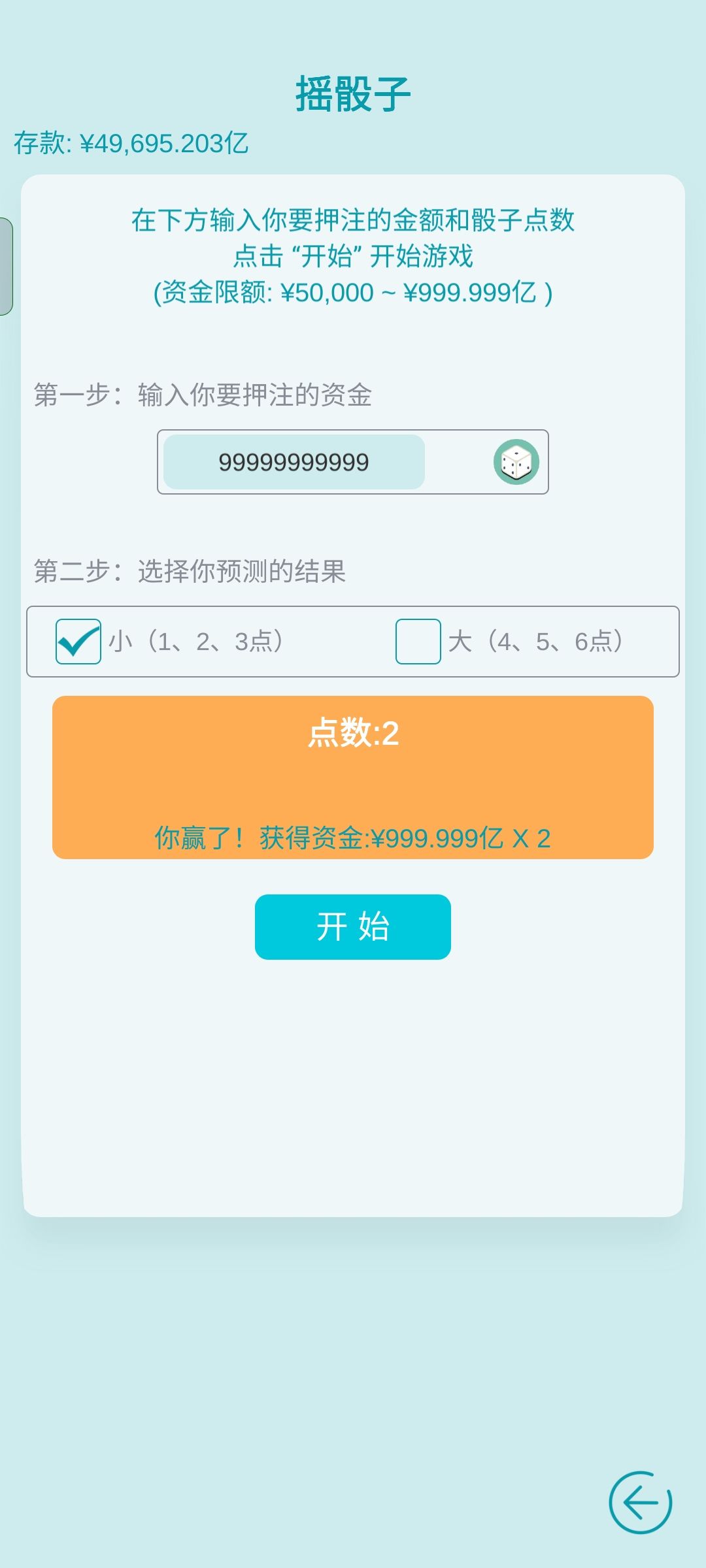 每次不要压太多以防连着输。比如你有100亿每次押金给个5亿就行,防止连续输十几次。