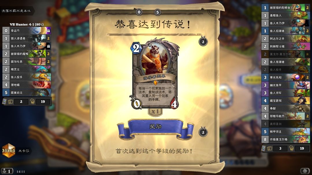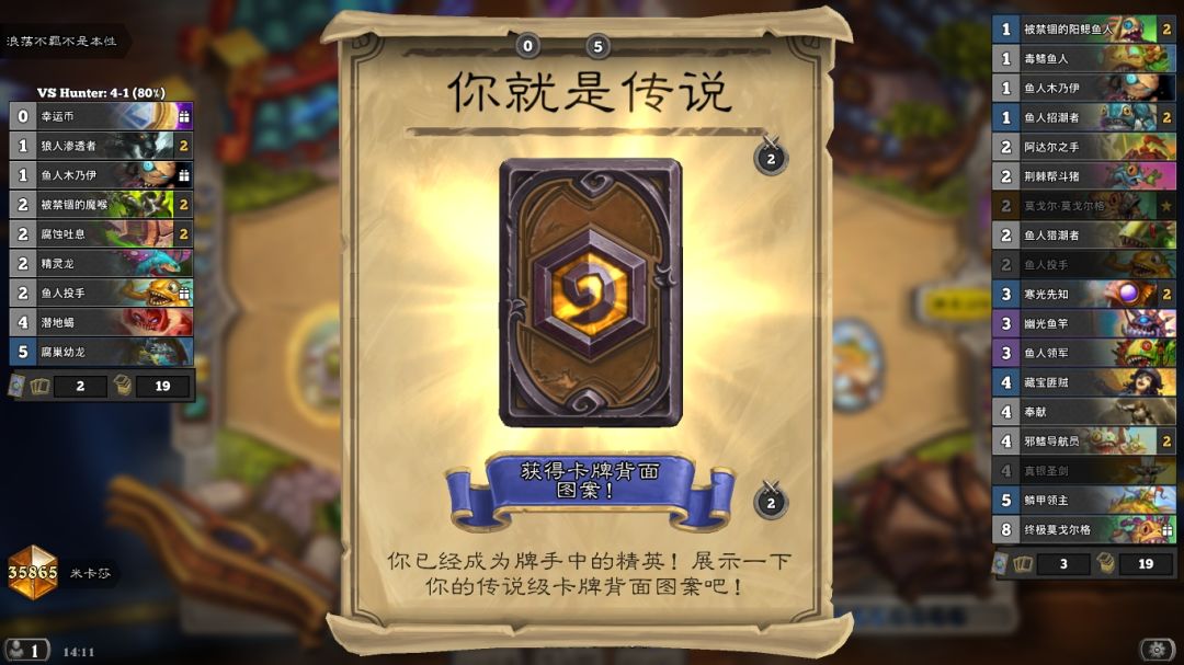 龙猎也不错,直到低保的时候还有接近80的胜率,但是冲传说打了10来把就不行了。有萌新缺尘冲低保的话可以考虑一下