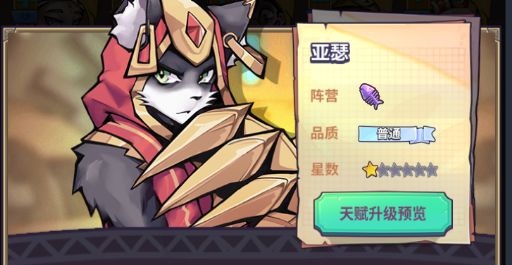 莫德雷德:稀有品质,三连回怒快,天赋加暴,技能叠伤。需要高暴和1-2回合的启动才能体现出强力,前期伤害低迷。