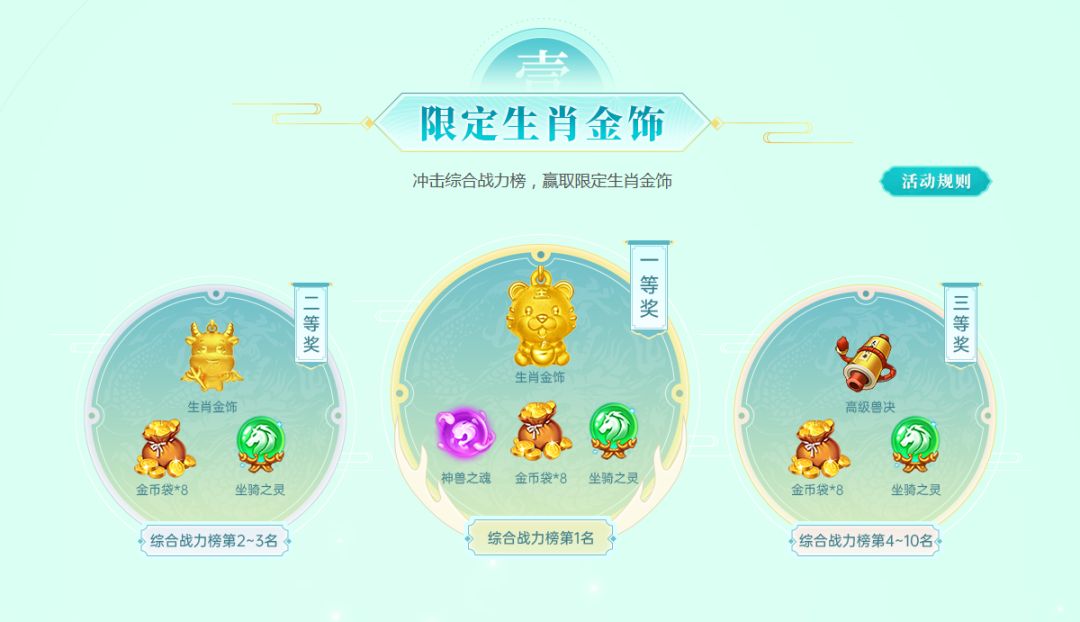 第1名:奖励价值1580元生肖金饰+游戏道具*3
