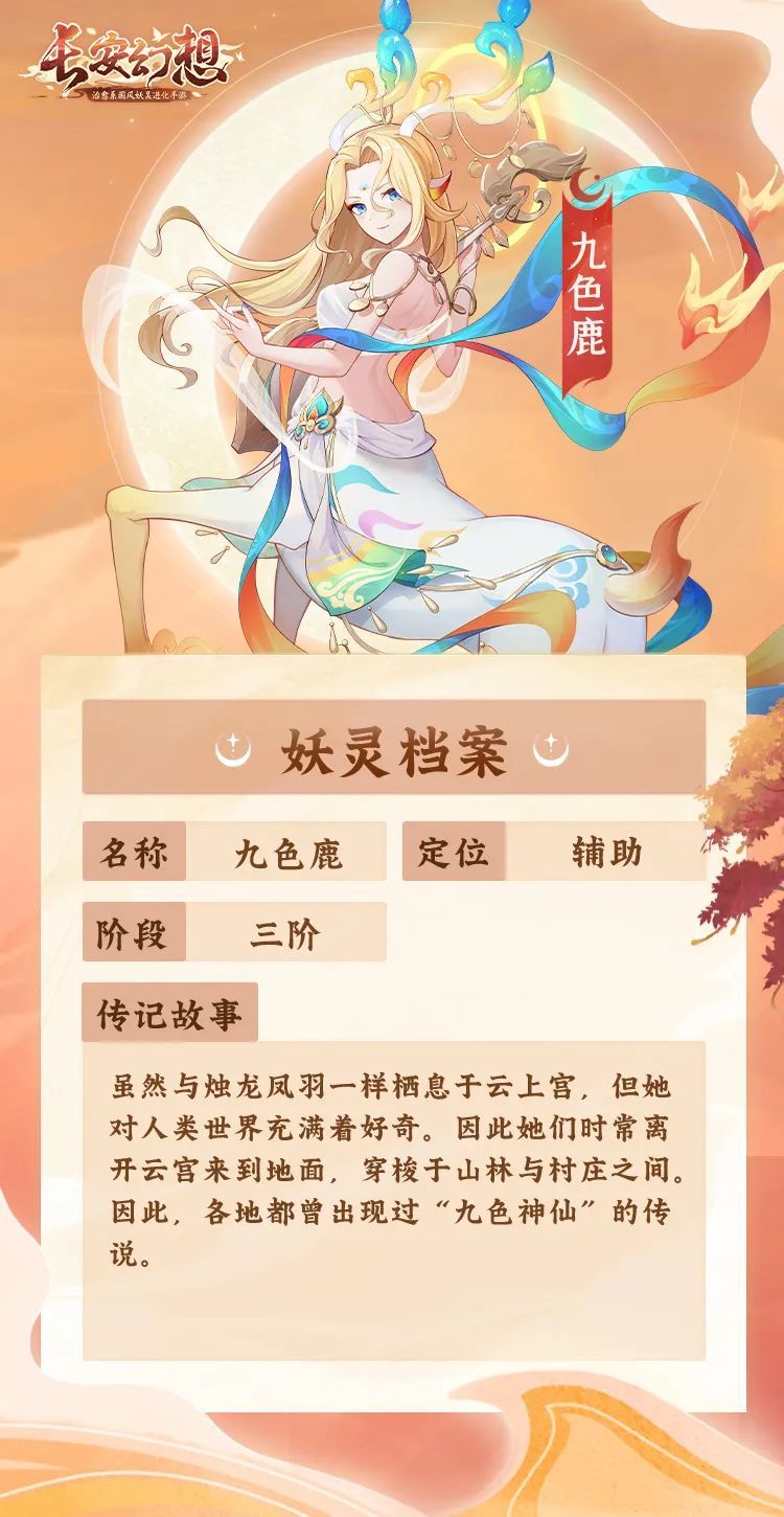 九色鹿吸收天地精华,其技能也以精华为主。主动技能【吸取精华】可对敌方单位造成法术伤害并随机制造红/蓝/绿精华药剂精华药剂可恢复一定生命,且附带伤害/物理防御/法术防御加成,作用于友方单位,为团队保驾护航。