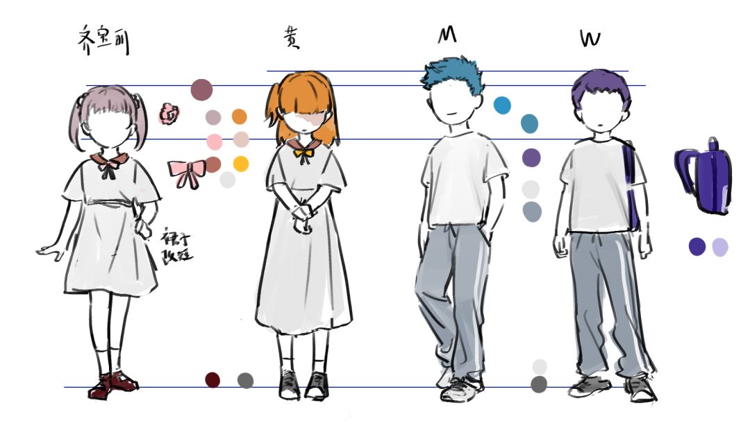 因为没什么彩蛋可以给大家了,大哭大闹让美术大大从草稿箱扒了一张《主角人设草稿图》给房友们!