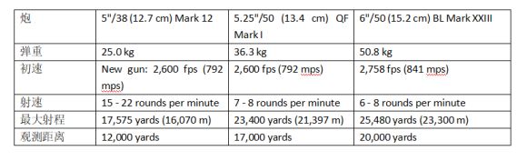值得一提的是大英的5.25。口径看着是小,实际上为了追求对海性能,极力优化对海弹道,装配重弹。导致其性能与美军5/38差异极大,简直不是一种东西。