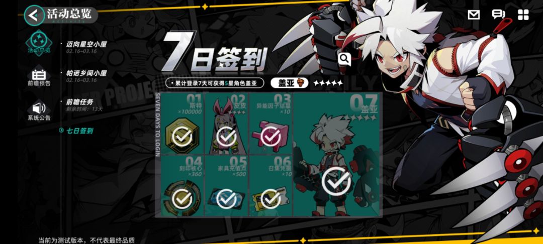 我没有卡bug,但是他显示我七天签到满了,领了盖亚,但我背包没有