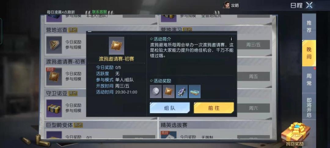 除此之外,升级有一件必备物品,就是我们的渡鸦印记。渡鸦印记可以使用作战积分在商店进行兑换,而作战积分的获得就需要积极参与我们日程任务了,日程任务中的【航天基地】、【训练赛】、【渡鸦邀请赛】都会奖励我们作战积分,大家一定要看清楚活动的开启时间,和小伙伴们一起积极参与哦。