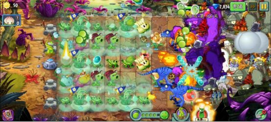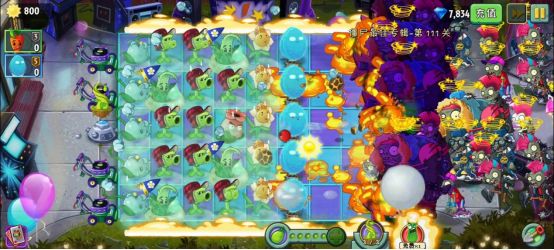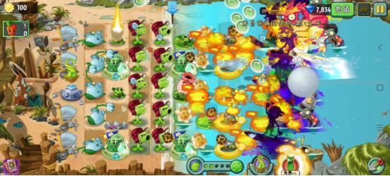 4阶:种植时有35%概率释放大招。大招效果为向前方扇形区域发射大量泡泡攻击僵尸,其中有概率发射的大泡泡可以直接吹走小鬼僵尸。