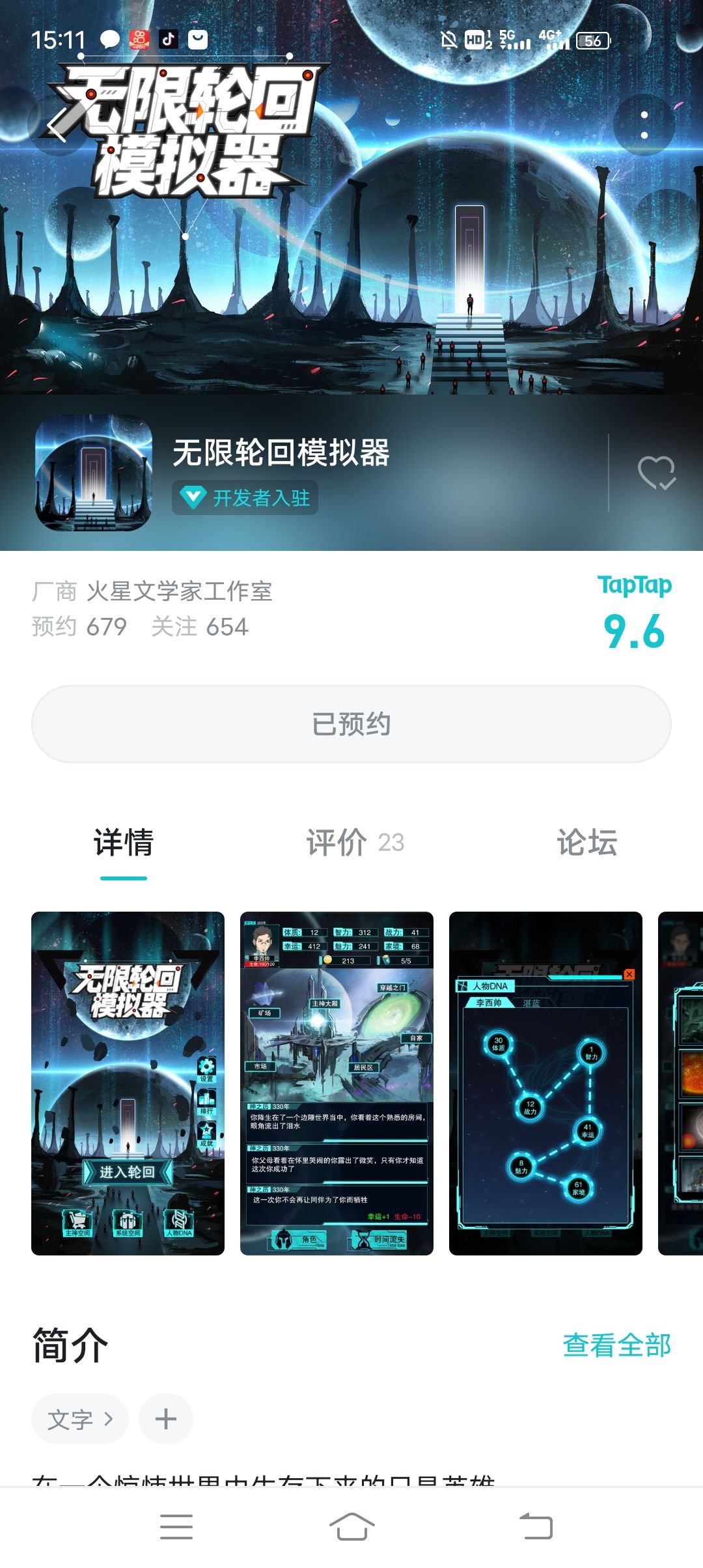 预约《无限轮回模拟器》,并在该帖内发送预约成功的截图,如:以下示例