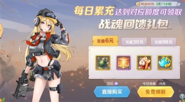 ✦每日累充达对应额度可领取战魂回馈礼包(也可使用钻石直接购买);