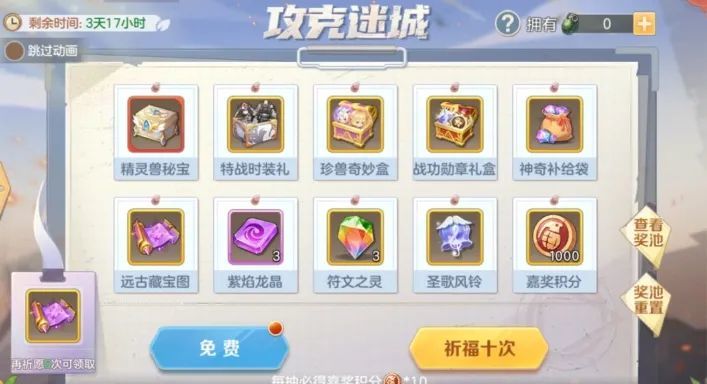✦自选许愿奖池,消耗许愿瓶或钻石进行许愿,每次许愿都将获得奖池奖励之一;