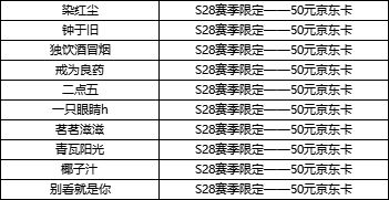 S28赛季限定——50元京东卡(10份)